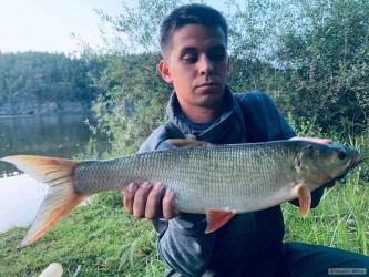 Neuvěřitelný asi půlhodinový souboj na feeder s vlascem 0,18 se štastným koncem pro mne i pro amura. 94 cm nevážen a vrácen zpět do Sázavy. Nástraha minipeleta a plovooucí boilie. Děkuji kamarádovi Martinovi za podebrání ryby, neboť dostat tuto rybu do standartního podběráku nebylo nic jednoduchého.