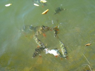 Po měsíční rekreaci v nemocnici nastal čas,začít kontrolovat výsledky probíhajících pokusů.Jako první na řadě byla horní část potoka,který je od okolí odříznutý neprostupným splavem a populace PO byla v minulosti vyhubena vydrami.Obnova se daří a i přes to, že tam nebyl na jaře vysazen plůdek PO,tak půlročci ze samovýtěru tam byli.Něco málo se naředilo tam kde bylo PO hodně a vysadilo do potoka,který slouží jako CHRO na budoucího generačního PO pro potřeby líhně.Petrův Zdar
