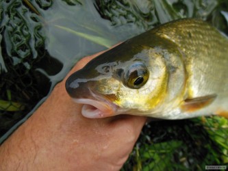 Lipan se nekonal, konal se tenhle potočák. Sběr nulový, byl jsem nucen sáhnout k nymfě a fotit mobilem, protože foťák jsem zapomněl. :))