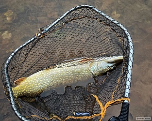 Kdo hledá ten najde. Po zdolání a zdokumentování prvního ranního kapra se těsně před balením, neobvykle prudce, přibližně na 500 m rozjíždí druhý prut. Rybu ještě ze břehu obracím před zatopenými stromy a vyrážím za ní. Po napínavém souboji podebíram krásně vypaseného šupináče.