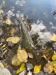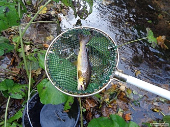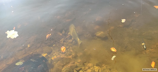Voda už je poměrně studená a hodně čistá. Dopoledne, kdy slunce svítí na hladinu, je dobře vidět na dno i dále od břehu, což se pstruhům moc nelíbí a většinou nejsou moc aktivní. Snaží se držet ve stínu a vyplouvají teprve až po poledni, kdy se začne slunce schovávat za protějším kopcem. Líhnoucího hmyzu kvapem ubývá a ryby by se měly začít konečně více krmit na zimu. Skoro dva týdny ryby vůbec nebraly a teprve minulý víkend se to trochu zlepšilo. Dnes odpoledne jsem chytil 2 duháky a 2 mi spadli. V tom větru ani listí moc nezavazelo, protože bylo většinou naváté u protějšího břehu. Bodovalo šedé bibio s červeným srdíčkem a fluožlutý pavouček. Snad to už konečně, před koncem sezóny začne lépe brát.