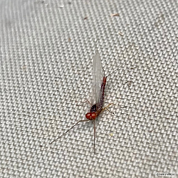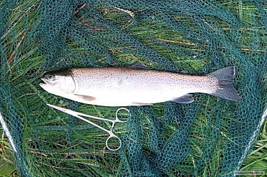 V pondělí jsem vyrazil zachytat si na vzdáleném stojáku, který je velmi dobře zarybněn salmonidy. Jejich potravní aktivita byla ale bohužel ovlivněna příliš letní teplotou vody a také kolísajícím tlakem vzduchu. A tak sběrů z hladiny i ve vodním sloupci bylo velmi málo. Duháci hlavně předváděli jen různé "gymnastické" výkony (skoky nad hladinu) nebo "rychlostní závody" těsně pod hladinou. O moje mušky se moc nezajímali. Za celý den jsem měl pouze dva záběry a zabojoval si se dvěma duháky. Ale bylo tu krásně a nádherný klid, protože se tu během dne objevilo jen asi 5 rybářů. Rád se sem zase vrátím.