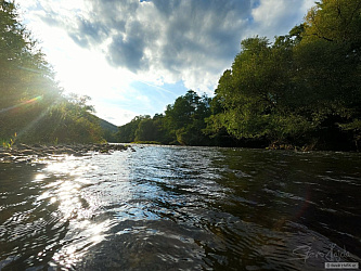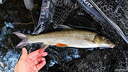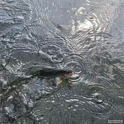 První ryba poslední výpravy k mé oblíbené řece. Záběr přišel po krátké bouřce, která ryby značně rozhýbala.