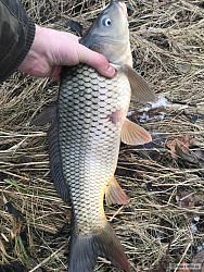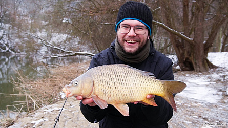 Vydal jsem se v mrazech ulovit nějakého toho kapříka na method. No jediná šance byla řeka, která díky letošnímu vysokému průtoku nezamrzla i přes velmi nízké teploty. Zvolil jsem místo, kde vím, že je taková díra hned pod břehem a kde ty ryby prostě v tom vysokém průtoku být musí a ono jo. Kapřík nebyl nijak velký, ale ta radost z úlovku v té zimě velká rozhodně byla :D No...výraz mluví za vše. :D Zároveň to byla moje první ryba roku 2024 :)