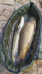 Za ty 4 hodiny co jsem tam byl, se mi povedli přes k 15 záběru, velkou čast jsem ani nefotil, vyháčkoval a hned pustil protože už mi jel i druhý prut a to byli třeba ryby kolem 10 kg, záběry chodili většinou do 5 min po nahození a to jsem chytal v 70 cm hloubce ! Tak vytáhl jsem asi 11 kaprů, 1 sumce a jednoho nádherného lína 53 cm který mi udělal opravdu obravskou radost ! Ale většina ryb byla více méňe váhově do 15 kg a těsně před odjezdem mi to sebrala ta správna mamina, souboj přes 40 minut, šel jsem za ním po proudu asi 100 m ale nakonec jsem ho vytáhl a to byl prostě lysec jak hovado, váha byla dáleko za hranici 20 kg. A hlavně z tohodle úseku Labe kde bych řekl že taková ryba snad ani nemůže plavat a ještě k tomu jsem tam byl úplně po prví...