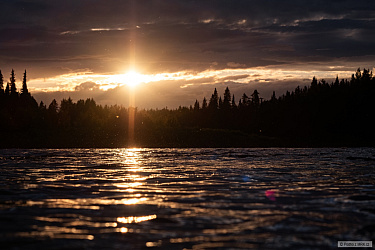 První půlku výpravy jsme strávili na menší lesní řece na polárním kruhu, čemuž i odpovídalo počasí, které se stihlo změnit nespočetněkrát za den. Ze sluníčka, kdy jsme se museli chladit v řece, po bouřky s deštěm, kroupy a chladné noci. Místní atmosféru ještě dolaďovali všudypřítomní komáři.