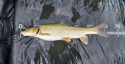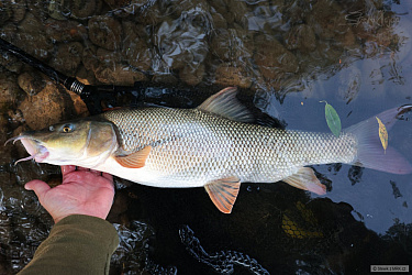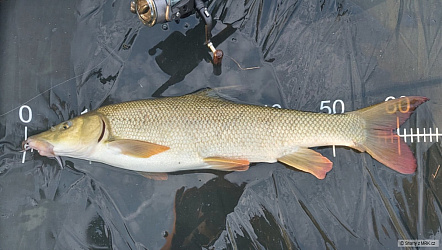 Krásna 70cm mrena na smáčika 🙂 Neskôr som zazrel loviacich rybárikov tak pokus o pár foto, pár hodín krčenia sa s foťákom v kriakoch sa vyplatilo a zážitok riadny 🙂
