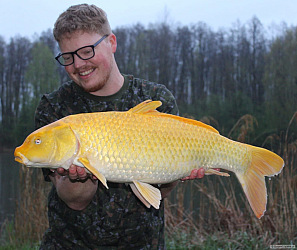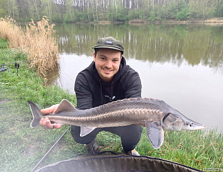 Druhý den po chycení dvou krásných lysců jsem doma nevydržel a navečer vyrazil na letošní šestou dopůlnočku. Byl pátek podvečer a všude hromady rybářů. U vody potkávám známého a tak jsem si k němu po optání přisedl. Hodinu klábosíme a přesně podle místního jízdního řádu dostávám před devátou jízdu. První dvě minuty to vypadalo na sedmdesátníka co moc nebojuje. Pak mu asi došlo že je píchnutý a začalo dvacetiminutové tóčo. Deset minut jsem se modlil ať to není sumec. Jenom jel a nešlo s tím nic dělat. Po nadejití několika rybářů vlevo jsem ho konečně navedl do podběráku. Sotva se tam vešel. Jeho proporce jsou jako ze snu. Sto devět centimetrů a dvacet tři a půl kila čisté váhy. Radost byla obrovská, nikdy jsem delšího kapra nechytil. Rychle pět fotek a třeba zase někdy příště. Dědovi zachutnala koule do studené vody ve dvacítce kalibru.