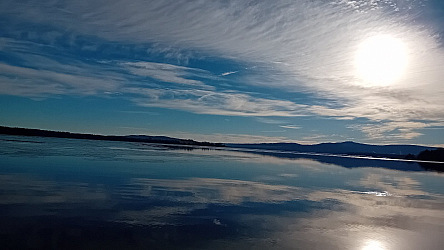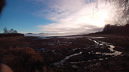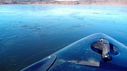 Pádlo jsem našel, ale revír byl už dost pokryt ledem, protože v noci bylo jasno. Už jsem byl na zpáteční cestě, ale vrátil jsem se, že to ještě přeci zkusím i když chuti i sil už nebylo nazbyt.. hledal jsem polorozmrzlá místa a ledovým příkrovem se prokousával opět na to vysněné místo. Slunce svítilo, až na obzor prázdno bez lidí, no idylka.. ale vyhlídky na rybaření mizivé.. 3x jsem se vracel ledem, protože převládal v mozku stít obav, který se pral s mým nadšením.. nakonec jsem uvíznul v prostředku ledu a předchozí stopu vlivem větru semkly ledy a to už byla poslední výstraha..