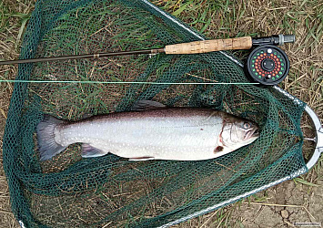 Včera jsem zahájil svoji letošní muškařskou sezónu na soukromém pstruhovém stojáku. Všechny hlavní faktory pro úspěšný lov byly naplněny, takže jsem předpokládal, že si velmi dobře zachytám. Dopoledne ale bylo velmi složité a ničehož jsem moc nedosáhl. Hned na druhý hod jsem měl pomalý opatrný záběr a po pohotové záseku mně ryba utrhla mušku i s koncovým návazcem. Pak se dlouho nic nedělo (kromě několika krátkých potahů za mušku). Pak jeden upřímný záběr a vytáhl jsem celkem pěkného duháka. Pak opět několik opatrných záběrů, jejichž výsledkem po záseku bylo zdolávání několika znatelně větších sivenů. Bohužel se všechny exempláře z mušky setřepaly. Až odpoledne (cca po 14.hodině) se všechno změnilo - měl jsem pravidelné záběry (opět od sivenů), z nichž většinu jsem vrátil vodě a jen 2 kusy si ponechal. Největší ryba měla 48 cm a vážila 1,77 kg (viz foto 1 a 2) a její zdolávání bylo velmi napínavé. Díky sv.Petře za přízeň.