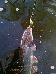 Včera jsem zahájil svoji letošní muškařskou sezónu na soukromém pstruhovém stojáku. Všechny hlavní faktory pro úspěšný lov byly naplněny, takže jsem předpokládal, že si velmi dobře zachytám. Dopoledne ale bylo velmi složité a ničehož jsem moc nedosáhl. Hned na druhý hod jsem měl pomalý opatrný záběr a po pohotové záseku mně ryba utrhla mušku i s koncovým návazcem. Pak se dlouho nic nedělo (kromě několika krátkých potahů za mušku). Pak jeden upřímný záběr a vytáhl jsem celkem pěkného duháka. Pak opět několik opatrných záběrů, jejichž výsledkem po záseku bylo zdolávání několika znatelně větších sivenů. Bohužel se všechny exempláře z mušky setřepaly. Až odpoledne (cca po 14.hodině) se všechno změnilo - měl jsem pravidelné záběry (opět od sivenů), z nichž většinu jsem vrátil vodě a jen 2 kusy si ponechal. Největší ryba měla 48 cm a vážila 1,77 kg (viz foto 1 a 2) a její zdolávání bylo velmi napínavé. Díky sv.Petře za přízeň.