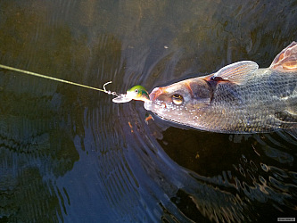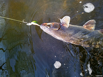 Jak jsem se oklepal po noční, vyrazil jsem si zasušit. Dopadlo to znamenitě - tohle je jeden z osmi, co jsem přemohl, dva mi to upráskli u dna. Jen se mi prostě nedaří dostat se pod 50. :-) A na rozloučenou přišel jeden potočák.