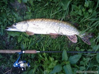 Podvečerní procházka kolem vody s cílem ulovit štiku se nezdařila.Pouze několik tloušťů menší velikosti a pěkně zbarvený kapřík s váhou 3,5 kg,který dostal pozvánku k nám domů:-))