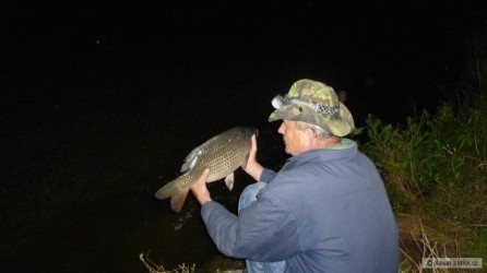 Tak jeden rybníček v Pražském revíru vydal krásnou rybu. Já takovou vyřízl, ale kámoš Přemek už byl opatrnější. Celý večer jen pár cejnů a kapři najeli 20 minut před zavíračkou. Když jsme odjížděli domů, tak voda " vařila " . Ale s tím nenaděláme nic. Jinak se po mírném dešti v půl jedenácté večer vyčasilo a bylo u vody krásně. A nutrie málem ohlodala Přemkovi jeho " kapřák " , kterej nahodil jako doplněk k feederu.