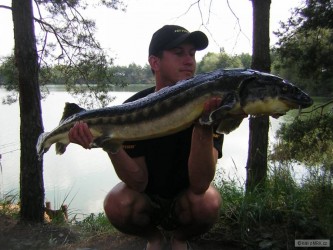 Strávili jsme týdenní dovolenou na pískovně Roudnice. Dovolenou jsme si užili se vším všudy, akorát ryby nespolupracovaly. Za týden jsme ulovili 17 kaprů a 8 jeseterů. Chytali jsme kapry v rozmezí od 5 kg do 11,2 kg. Můj největší byl lysec 81 cm 11,2 kg a taťkův 82 cm 9kg. Oba dva kapři přišli na Kořeněnýho tuňáka s broskví. Ostatním kaprům zachutnalo boilie Biosquid + A.C skopex-oliheň a boilie Bioprotein plus + ex. esence kouzelné ovoce.Vše od firmy Jet Fish. Dále jsem si zvýšil osobák v jeseterech na 113 cm a 9 kg. Taťka chytl jesetera 116 cm a 8,2 kg. A potom zabodoval i brácha s jeseterem 116 cm a 8 kg.