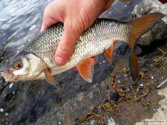Dnes jsem se vydal na vcerejsi misto. Prvni nahozeni a hned slusnejsi ryba, ale vyhakla se. Druhou jsem sekl vylozene do tuhyho, po asi 10 min boje se ale vyhakla taky. Odhadem parma 60+. Pak jsem vytahl 4 jeseny do 40 cm a asi 20 plotic. K tomu spousta nesekatelnych zaberu, resp. seknutych do luftu. Nepomohlo ani stridani delky navazce.