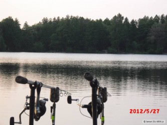 Tak jsem vyrazil na zkoušku zda jsou kapříci již po milostných hrátkách,či nikoliv.Zjevně se dotíraj.Udělal jsem čtyři zaběry,tento největší.Tak snad už to příště bude lepší:-))