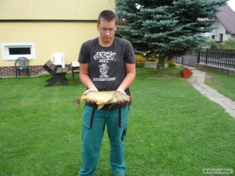 S parťákem Honzou jsme se rozhodli, že na podzim budeme zkoušet různá místa na naší oblíbené vodě a kapry tak aktivně vyhledávat. První zkouška byla na místě, kterému jsem věřil snad ze všech nejméně a jak už to někdy bývá, ono mě mile překvapilo. Chytat jsme přijeli už kolem 4 hodiny odpoledne a já si rozkrmil každý prut dvaceti kuličkama V 7 hodin jsme zatím hluché pruty přehodily a opět lehce přikrmili stejnou dávkou. Za další půlhodinku jsem dostal jízdu a hned po záseku bylo jasné, že to bude pořádná ryba. Prošel jsem se za ní podél břehu dobrých 150m a i potom zdolávačka stála za to. Nakonec to pro nás dobře dopadlo a já se mohl vyfotit s krásným šupináčem 89cm 14,5kg. Po něm jsme s Honzou chytli oba ještě jednoho kapříka kolem 70cm. Za ct-exil Ondra Křížek.