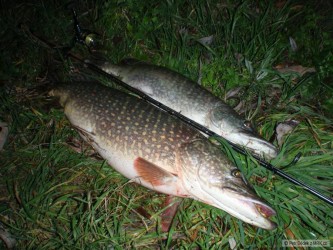 Dnešní rozlučka s rokem 2012 dopadla dobře. Na přívlač štička 50 cm a na splávek dva duháci. Spokojenost :o)).