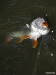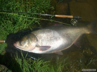 Včera večer jsem na nymfu chytil 5 kaprů, dneska jsem vzal mušák hned po obědě, že si tam skočím na hodinku :) Uprostřed rybníku hltalo z hladiny hejno velkejch amurů, tak jsem jim hodil před držku suchou mouchu a ejhle, oni to byli tolstolobici :)