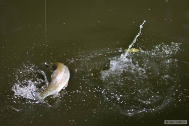 Dnes jsem vyrazil protáhnout smáčka a celkem se dřilo. Potočáci, duháci i pár okounků. No, sice žádní velikáni, ale byl to příjemný lov. Jen ta džungle převeliká mě to místama dávala pěkně sežrat.
