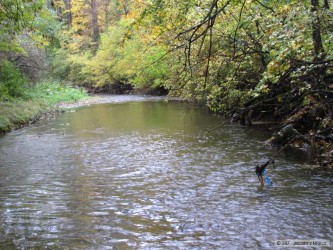 Rozhoupal jsem se tesne pred setmenim, ze zaskocim aspon za barak, ale mohl jsem si to odpustit, v rece nebyla voda, defacto jen listi. Nastesti jsem nasel uplav, kde se vetsina listi drzelo dal v proudu a premluvil alespon pekneho tlouste, ktery si vyslapl na 9 cm shadrapku. Vecerni lov jsem vzdal jeste drive, nez zacal, protoze to listi fakt neslo prolomit ani s gumou a poradnou jigovkou ;)