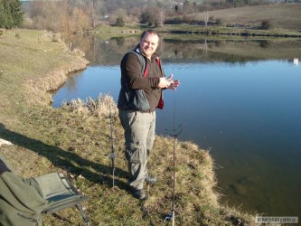 Po minulotýždňovej niekoľkohodinovej rybačke s 3 lopatami opäť na tejto novej lokalite, ale už s inou taktikou. Nakoniec sa predsa len zadaril jeden kaprík. Podľa dostupných info jediný kapor chytený v tento deň na celom jazere. Potešil...