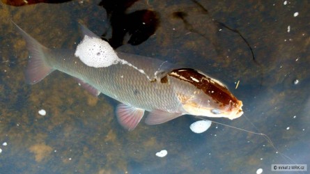PS: na fotce zvláštně zarudlej kapřík, kterému strašně lehce padaly šupiny, nějaká nemoc...?