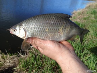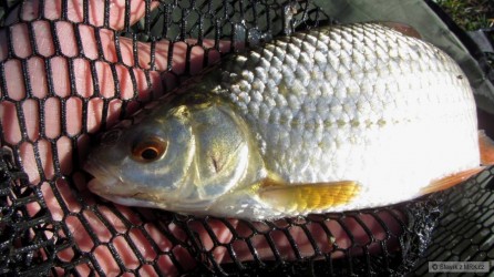Dnes na pár chvil u vody, pochytáno něco běloby a nakonec toto - prosím znalce o určení, já opravdu netuším. Nejdřív jsem myslel, že je to karas, ale při vyháčkování jsem se nestačil divit - viz foto. Zabral na červy. Bohužel vyšlo jen jedno foto, zbytek je k nepoužití neostrý.