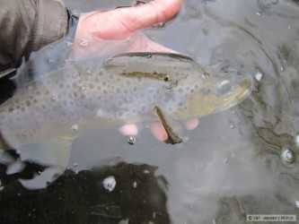 Dnes po pěti letech znovu na pstruhovce a parádně jsem si zachytal. Za 2,5 hodiny chyceno asi 20 potočáků, 1 duhák. První ryba krásný potočák okolo 35cm zabral na první hod pod nohama, ale dostal jsem ho až napotřetí, nádhera. Pak už menší až malí. Všechny ryby puštěny. Za celou dobu lovu jsem neviděl ani jednoho rybáře, neuvěřitelné. :-)