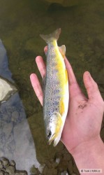 Dnes opět na pár hodin po obědě na pstruhovce, tektokrát se Zdenálem, kterej mi dělal břehaře. Vody moc neteklo, ryby však o sobě dávaly vědět celkem dost. Jen chytit se je nedařilo. Takže celkem chyceno jen 8 potočáků. Proběhly i první pořádné pokusy o chytání na mokrou mouchu a musím říct, že to chytání má něco do sebe, jen to bude chtít ještě hodně zapracovat. Bylo hezky, kolem plno ještěrek, hmyzáků a zajímavých rostlin, potkali jsme stádo divočáků, zkrátka dobré to bylo.