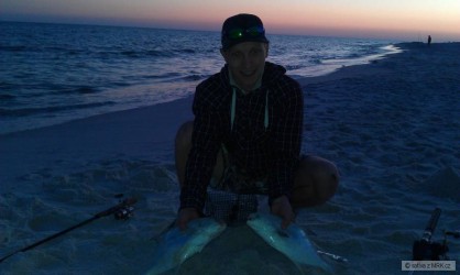 na zive sendfleas(pisecne blechy) chyceny tyto ryby Florida Pompano.V jeden moment oba pruty zaber,docela sranda tahat dve ryby naraz