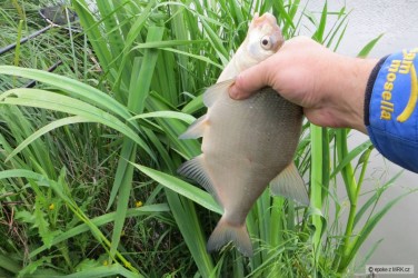 Odpoledne jsem se zajel podívat k vodě, jak to vypadá s rybí obsádkou. Po chvilce začalo pršet a větší záběr stále nepřicházel. V přestávce mezi další dešťovou sprchou přišly takřka na jednou dva záběry a chvilku po nich další dva. Za deště byl už opět klid, a tak jsem sedl na kolo a s deštníkem v ruce mazal domů.