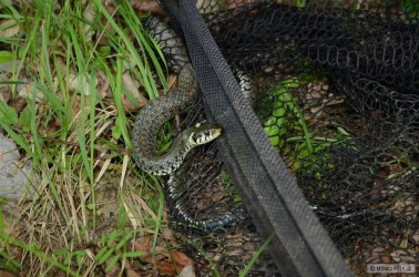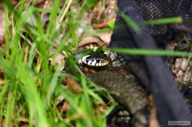Vrátil jsem se po týdnu domů zcela vyklidněný a s čistou hlavou. Čučení do syté, jarní zeleně mi dělá moc dobře. Jel jsem k vodě s cílem lovit hlavně kapry a sem tam zkusit i hada. Úhoři se mi však zdárně vyhnuli,přesto jsem pár plazivců potkal. Nejprve se mi do v trávě položeného podběráku zamotala užovka. Zkusila prolézt okem podběráku a nějak zapomněla, že je po obědě. Zhruba v jedné třetině délky se zasekla o obsah svého žaludku a nemohla ani tam ani zpět. Pomohly nůžky a obětování síťky podběráku.
