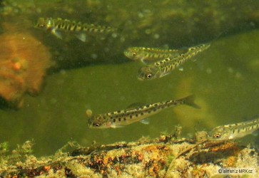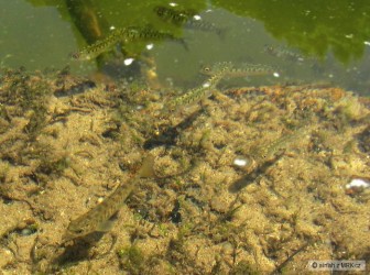 Už jsem myslel, že se u nás nemá co vytírat, ale hejnko asi třiceti 3-4 centimetrových lipánků mě přesvědčilo o opaku. Dokonce mezi nimi bylo i pár o trochu větších potočáčků. Snad se jim podaří rychle vyrůst, protože z poza klacku je pozoroval jeden nenasytný okoun.