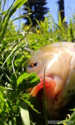 Nakonec se přece jen tři kapři velikosti K3 podívali na břeh. Na druhém snímku se kapr vrací tam kde je mu nejlépe.