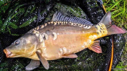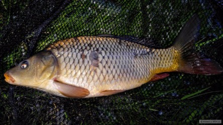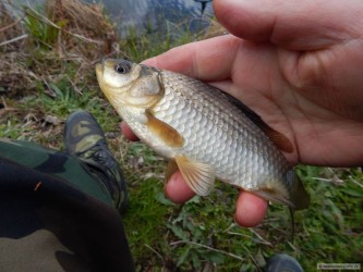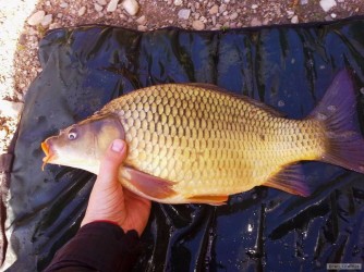 Kapřík z dnešního aprílového odpoledne , ulovený za sněhové vánice a silného větru . Jak praví klasik kapr a větru a deště bere náhle a prudce :-))