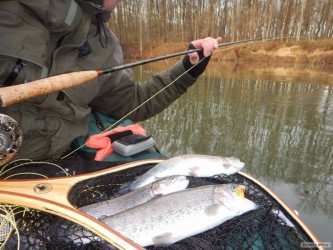Včera krásných 6 hodin v belly boatu. Ale stálo to za to - přes 50 ryb, několik dublet, dokonce jedna tripleta. Promrzlé nohy za to určitě stály :-)