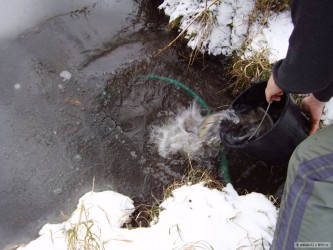 Protože voda už trochu vyčistila,tak jsem mohl konečně udělat pár fotek sádky,kterou na můj návrh MO upravila nákladem pár desítek tisíc kč pro generačního divokého potočáka. Je zabezpečena proti predátorům,pytlákům a nadměrnému rušení potočáků.Na dně je vrstva několika desítek cm říčního štěrku a oblázků.Je vybavena rybími úkryty a i přítok je udělaný,aby se nemohli zbytečně poškodit při snaze uniknout proti proudu.Po ověřovacím provozu mohla být po výtěrech osazena na plnou kapacitu.Petrův Zdar
