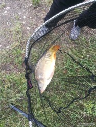 Dvě hodinky po obědě s jedním prutem a plechovkou kukuřice. Nachytáno spousta ryb. Plotice, kapři, cejni. I takových krasavců bylo dost.. Hezky bylo..