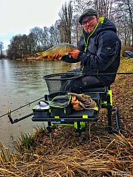 Ani vítr mne neodradil a po obědě jsem vyrazil. Do krmítka jsem použil SENZAS 3000 Super Black a na jeden prut nastražil masňáky a druhým testoval. Slunce pálilo a já byl v závětří, takže jen v mikině.Od prvního nahození jsem zdolával kapříky a plotice v pravidelných intervalech. Po hodince najeli cejnci a záběry hodně zjemnily. Ale i tak jsem nakonec zdolal 21 kousků . Super odpoledne na únor. Takže kamarádi šup k vodě!!!