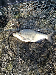Oproti minulému týdnu byla včera aktivita ryb o dost slabší... asi to ochlazení a mrazivé noci. I přesto jsem ale pár záběrů vymodlil :-) Celkem lapeno 5 cejnů 40-50cm a jeden jesen okolo 40 cm, na kterém si evidentně v minulosti něco chtělo smlsnout... Největším úlovkem dne byla parádní ledová kra o rozměrech tak 20x10m, která mi parádně ohnula oba feedry :-D Jo... a ještě jedna zajímavost... Prvního cejna jsem chytil při vytahování prutu... háček měl regulérně v tlamě, takže normálně zabral, ale asi tak jemně, že se záběr vůbec neprojevil (na 1oz špičce)...