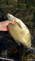 dnešní odhoz na štěrkovně..., mezi kapříky a konečně i lopaťáky, došlo i jedno torpédo +/-70cm.