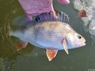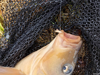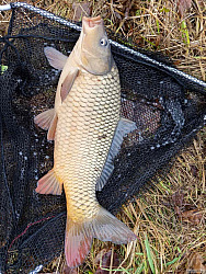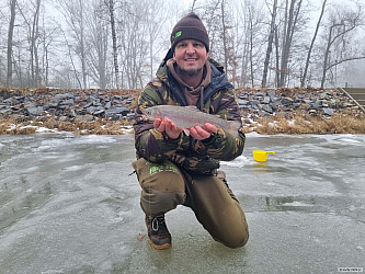 První kapr sezóny se mi povedl ještě v lednu. Předkrmil jsem si místo na rozmrzlý říčce asi půl kilčem boilies a methoďákem. Jeden prut jsem měl najemno se splávkem na houpačku s rohlíkem, na to ani drb. Na krmítko s methoďákem a rohlíkáčem se jeden spletl a rovnou pěkný kousek. Řeka dostala hroznou sodu od vyder a kormoránů. Ale něco tam zbylo, to je pozitivní. Svatej Petr mi letos naděluje. Za leden 7 druhů ryb, začátek sezóny jak má být.