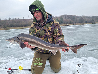 První den jsem byl na ledu od rána skoro do půlnoci. Druhý den od 7 znovu u díry. Moc se jim nechtělo, ale 4 kousci se mi povedli a k tomu dva cejni. Kamarádi to tak nehrotili a užívali si i chatky a hospůdky na břehu. Jesetera nechytili, ale nějaké pstruhy jo.