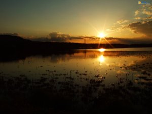 západ slnka-jazero