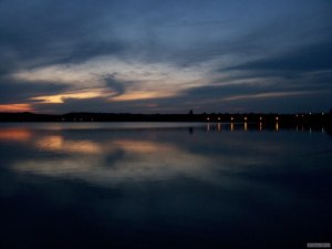 Západ slnka nad priehradou