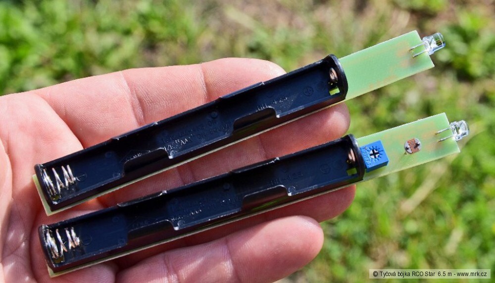Jednou z těchto tyčových bójí je i sklopná tyčová bójka RCO STAR. Skládá se ze šesti metrových a jednoho půl metrového dílu, z nichž horní je opatřený 13 cm širokým reflexním polepem a uvnitř vysoce svítivou žlutou diodou s vypínačem. Tuto variantu lze vyměnit za svítící diodu se stmívacím čidlem, které při poklesu viditelnosti uvede LED diodu do činnosti automaticky. Tato varianta svítí červeně. Oba systémy jsou napájeny dvěma bateriemi AAA 1.5V. Do vrcholu bóje se vloží snadno po sejmutí gumové těsnící čepičky.