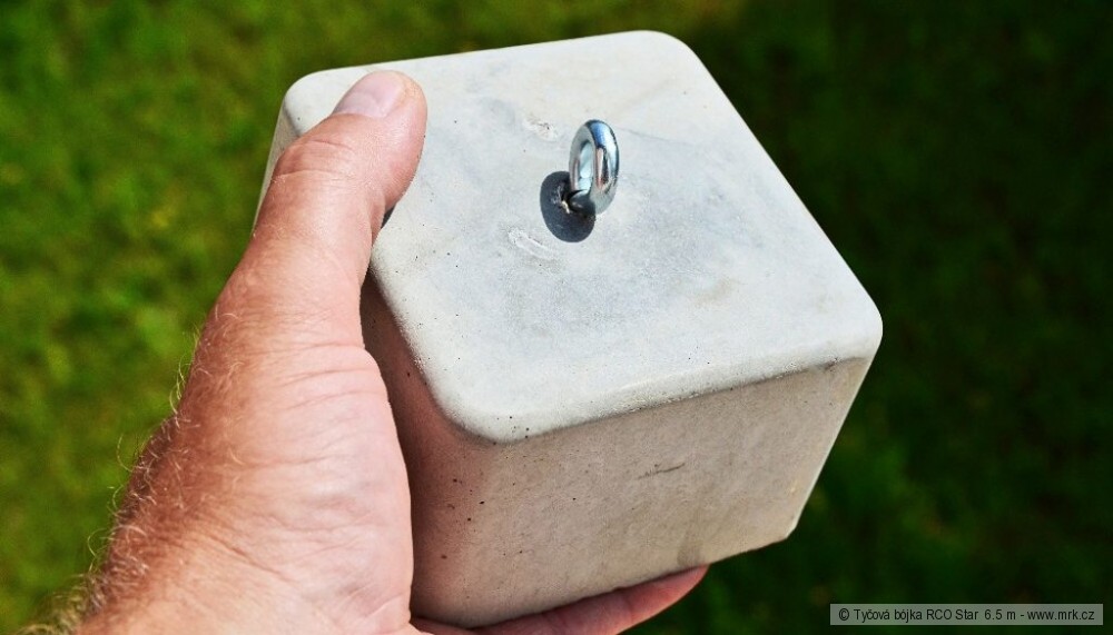 V žádném případě neponechávejte bójku, i když je v obalu, v horkých letních dnech ve vozidle. Teplota tam může dosáhnout až 70°C a tyče bójky se mohou zdeformovat. Bójka je dodávána standardně v plátěném obalu a součástí balení je betonové závaží s nerezovým očkem o hmotnosti 1,7kg a osvětlení.