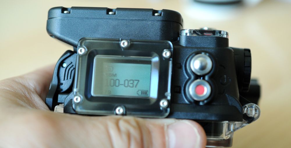 Ke kameře se dodává dokonce i dálkové ovládání s displejem, který zobrazuje stejné údaje jako horní stavový displej na kameře. Toto ovládání s kamerou komunikuje prostřednictvím wifi, které má kamera zabudované v sobě. Pomocí dálkového ovládání lze zapnout a vypnout nahrávání videa, fotografovat, ale také nastavovat šíři záběru, kvalitu obrazu a mnoho dalších funkcí jako přes menu na kameře. Ovladač je napájen interní baterií, která se nabíjí přes USB. Stejně jako kamera je i ovladač vodotěsný, takže se nemusíte bát namočení. Ovladač je lehký, má jen necelých šedesát gramů a dá se pevným klipem kamkoli připnout. Krom dodávaného dálkového ovladače lze tuto kameru díky wifi spárovat s chytrými telefony a pomocí volně dostupné aplikace ji ovládat, sledovat obraz a také listovat v pořízených záběrech. Jediný problém je, že voda má tu vlastnost, že wifi signál nepropouští, takže sledování pod vodou je přes wifi nemožné.